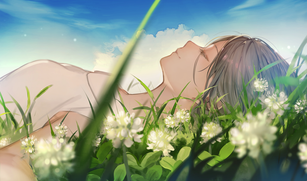 Anime Lying Down On Grass