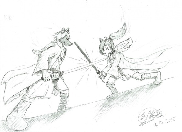 D18 Buster And Crystal Lightsaber Duel By Theangeldragon Fur